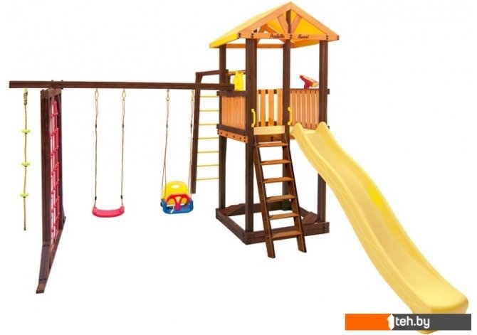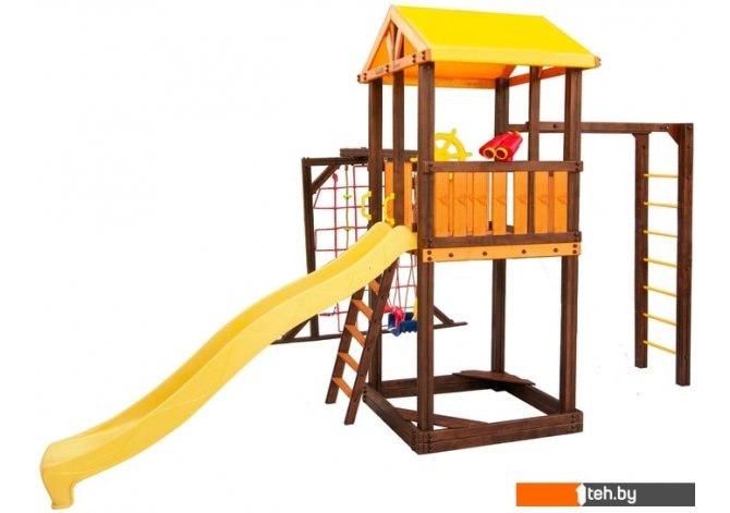 | Информация | Комплектация: игровой домик, песочница, лестница, скат, ручка пластиковая - 2 шт, Р-опция, П-опция, качели "Лодочка", качели "Малыш", канат с зацепами, штурвал "Шторм", бинокль "Капитан" |
