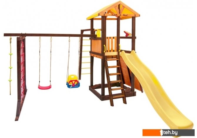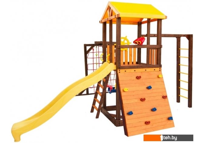 | Информация | Комплектация: игровой домик, песочница, лестница, скат, ручка пластиковая - 2 шт, Р-опция, П-опция, качели "Лодочка", качели "Малыш", канат с зацепами, штурвал "Шторм", бинокль "Капитан", скалодром большой |