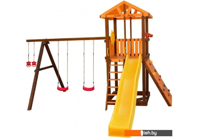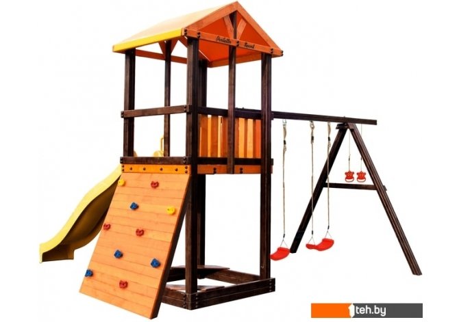 | Информация | Комплектация: игровой домик, песочница, лестница, скат, ручка пластиковая - 2 шт, А-опция, качели "Лодочка" 2 шт, кольца "Микки", штурвал "Шторм", бинокль "Капитан", скалодром большой |