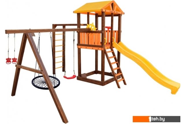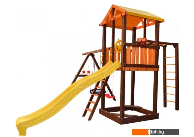 | Информация | Комплектация: игровой домик, песочница, лестница, скат, ручка пластиковая - 2 шт, Р-опция, А-опция, качели "Лодочка" 2 шт, кольца "Микки", штурвал "Шторм", бинокль "Капитан", качели "Паутина" |