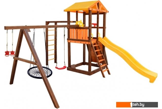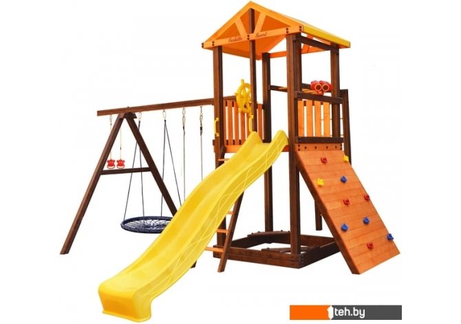 | Информация | Комплектация: игровой домик, песочница, лестница, скат, ручка пластиковая - 2 шт, Р-опция, А-опция, качели "Лодочка" 2 шт, кольца "Микки", штурвал "Шторм", бинокль "Капитан", качели "Паутина", скалодром большой |