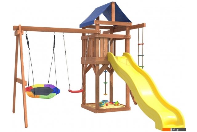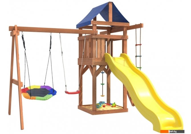| Информация | - Игровой комплекс National Tree Company с качелями лодочка и гнездом Гексагон IgroWoods ДП-13 представляет собой многофункциональный игровой комплекс, который включает в себя горку, качели, песочницу, игровую веранду, веревочную лестницу, скалодром и канат. - Детская игровая площадка является многофункциональным спортивным игровым комплексом для детей от 3 до 14 лет. - С помощью этой площадки дети смогут развить свою физическую форму, координацию движений и логическое мышление. - Садовые качели подвесные для улицы детские и взрослые, подойдут абсолютно для всех, так как качельная балка и полиуретановые канаты выдерживают общий вес до 250 кг. - Площадка изготавливается из лесоматериалов лиственных и хвойных пород. |