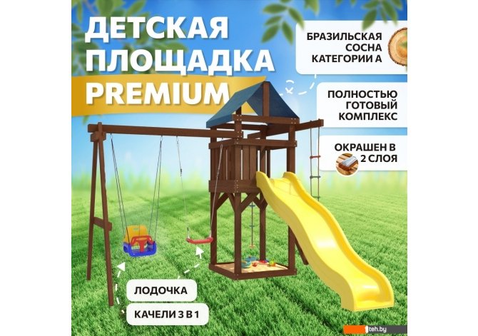 Фотографии, описание и технические характеристики модели National Tree Company с качелями лодочка и качелями 3 в 1 IgroWoods ДП-5 Premium взяты из открытых источников, официального сайта производителя или представительства National Tree Company в Республике Беларусь.