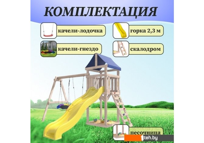 | Информация | ? Игровой комплекс National Tree Company с качелями лодочка IgroWoods ДКНП-13 - отличное решение для активного отдыха детей на свежем воздухе. Включает в себя горку, качели, песочницу, игровую веранду и скалодром. ? Многофункциональный спортивный игровой комплекс для детей от 3 до 14 лет, который поможет развить физическую форму, координацию движений и логическое мышление. ? Садовые качели подвесные для улицы детские и взрослые, выдерживают общий вес до 250 кг, подходят для всех, чтобы расслабиться и провести время со своим ребенком. ? Изготовлен из качественных и безопасных материалов, с естественной древесной текстурой. Предварительная шлифовка и закругленные края исключают возможность получения травм. |