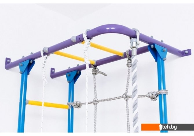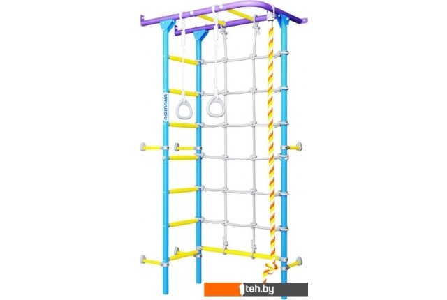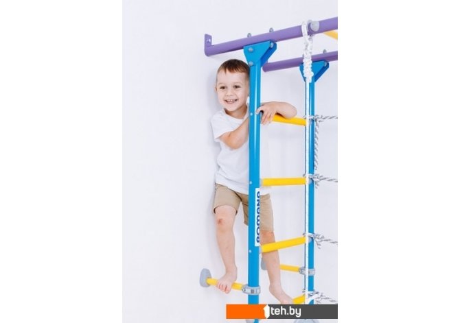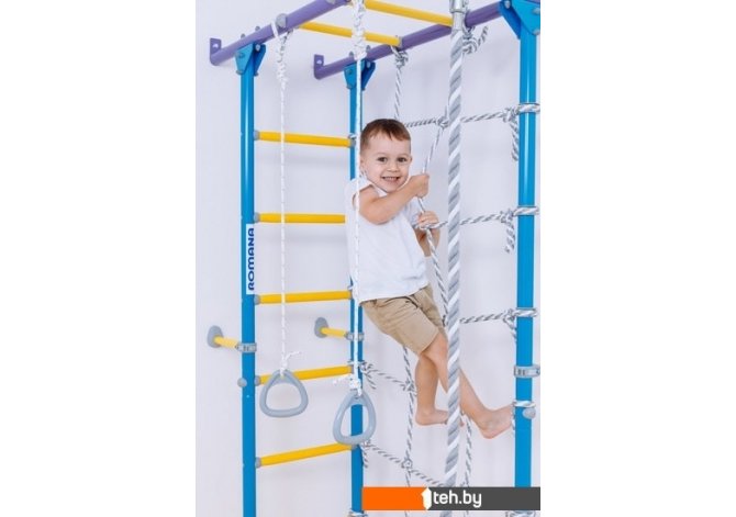 | Информация | У детского спортивного комплекса ROMANA S4 оригинальная конструкция и расположение элементов. На рукоходе можно разместить разнообразное навесное оборудование. В комплекте предусмотрены канат, кольца и канатный лаз шириной 80 см из крепкого шнура. Конструкция выдерживает вес до 100 кг (нагрузка при испытаниях — 200 кг). Ступени лестницы обладают массажным эффектом, развивая мелкую моторику. |