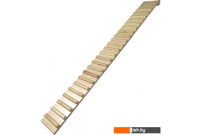 | Информация | Доска ребристая с зацепами навесная (наклонная) — представляет собой ребристую доску, изготовленную из фанеры 18 мм (береза), и ребра из фанеры прикрепленные саморезами. Наружные края доски имеют закругленную форму, что снижает вероятность получения травм при использовании изделия на занятиях. Поверхность доски навесной тщательно отшлифована и покрыта высококачественным трёхкомпонентным лаком в два слоя. Фиксация к стенке гимнастической осуществляется зацепами из полосы. Покрытие — бесцветный лак (в 2 слоя). Ребра из фанеры закругленные. Крепление к стенке: зацепы из полосы — 2 шт. |