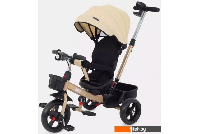 | Информация | Комфорт для крохи: активным участником дорожного движения крохе поможет стать фара со звуком и светодиодами; широкое анатомически правильное сиденье со спинкой подарит дополнительный комфорт; сиденье реверсивное — малыша можно развернуть лицом к миру/лицом к родителю; 2-точечные ремни и межпаховая перемычка защитят ребенка от случайного падения; складная подножка пригодится малышу, который пока не справляется с педалями; функция блокировки педалей позволит использовать их как подставку и не переживать, что нога ребенка попадет под педали; складной капюшон колясочного типа с фиксацией в нескольких положениях убережет ребенка от солнца и осадков; вместительный багажник и небольшой бардачок для важных мелочей обрадуют юного водителя. Комфорт для родителей: с помощью регулируемой телескопической ручки вы сможете управлять транспортным средством, пока малыш не справляется с управлением когда кроха начнет рулить самостоятельно, ручку можно снять; для быстрого доступа к ребенку предусмотрен мягкий разъемный бампер; смотровое окошко позволит наблюдать за юным водителем; стояночный тормоз обеспечит полную безопасность; металлический корпус делает изделие практически вечным; благодаря особому сплаву велосипед характеризуется высокой прочностью и легкостью; резиновые колеса не проколятся и не потребуют подкачки; подстаканник на руле для любимого напитка. |