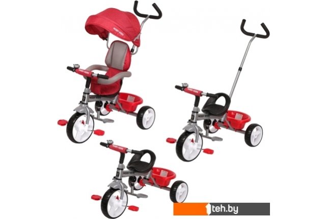 | Информация | Главная конструктивная особенность данной модели 3 в 1, делающая её практически уникальной, заключается в том, что велосипед можно адаптировать под возраст и навыки ребёнка, постепенно убирая съёмные части велосипеда: - Уровень 1: велосипед-коляска с полным родительским управление и максимальный комфорт ребёнка; - Уровень 2: ребёнок учится ездить на велосипеде, а родитель направляет его при помощи ручки; - Уровень 3: детский трёхколёсный велосипед и полное управления ребёнком. Функционал велосипеда позволяет малышу постепенно учиться им управлять, а родителю обеспечивать поддержку и контролировать процесс. Наличие переключателя «свободного хода» переднего колеса позволяет ребёнку крутить педали вхолостую отдельно от колеса, привыкая таким образом к новому для него виду движения и готовя его к дальнейшему освоению велотранспорта. |
