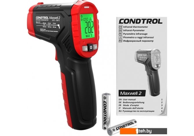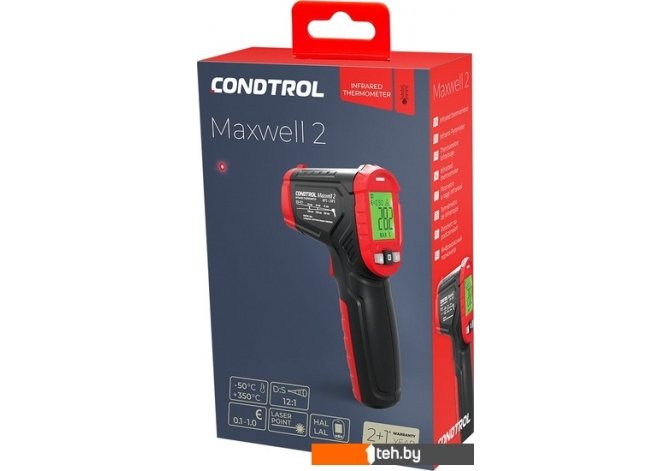 | Информация | ? Пирометр Condtrol Maxwell 2 предназначен для мониторинга тепловых потерь и поиска мостиков холода, зон утечки тепла, засоров в системе теплоснабжения, перегрева подвижных деталей в автомобилях и механизмах. Диапазон измерений температуры поверхности от – 50 °С до 350°С. Прост в использовании, компактен и легок. ? Оптическое разрешение 12:1 позволяет безопасно измерять температуру на расстоянии. Результаты измерений отображаются на дисплее с большими цифрами, которые легко читать. Подсветка обеспечивает работу в условиях плохой видимости. |