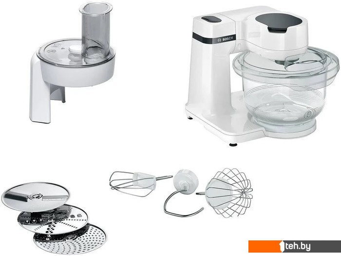 Ярким примером многофункциональной техники с разными насадками является Kenwood Prospero+ KHC29.W0SI. Здесь есть соковыжималка, мясорубка, измельчитель, кофемолка, терка для приготовления драников, 2 диска для шинковки, насадка для теста, венчик и т.д.