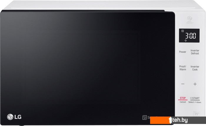 - 20-28 л. Средний размер. Могут иметь дополнительные режимы. Такие печи считаются самыми востребованными. Хороший пример — Samsung MS23T5018AP/BW с вместительностью 23 л, мощностью 800 Вт и несколькими дополнительными программами, в том числе размораживание и поддержание тепла.
