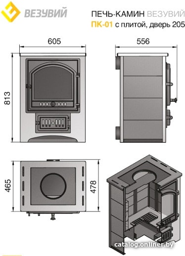 Фотографии, описание и технические характеристики модели Везувий ПК-01(205) 12 кВт (с плитой и т/о, красный) взяты из открытых источников, официального сайта производителя или представительства Везувий в Республике Беларусь.