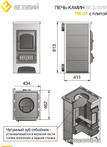 Фотографии, описание и технические характеристики модели Везувий ПК-01(270) 9 кВт (с плитой и т/о, бежевый) взяты из открытых источников, официального сайта производителя или представительства Везувий в Республике Беларусь.