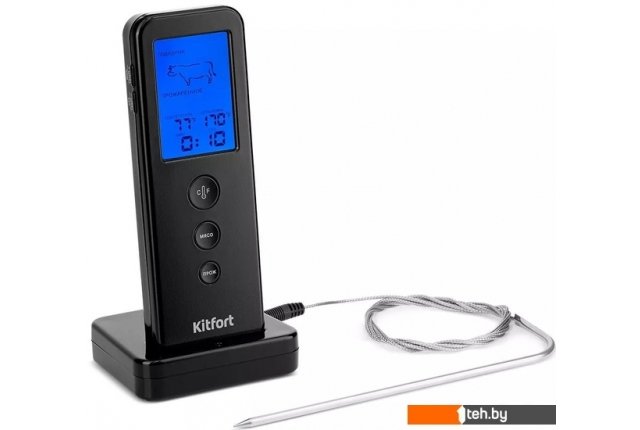 | Информация | Для настоящих ценителей сочных стейков! Термометр для мяса Kitfort KT-2067 предназначен для определения готовности и степени прожарки мяса. Ценители стейков смогут точно определить степень прожарки и вовремя закончить термическую обработку мяса по готовности после звукового сигнала термометра. Для любых видов мяса и птицы В термометре вы можете выбрать вид мяса: говядина, баранина, телятина, фарш, свинина, индейка, курица или рыба! Термощуп и термостойкий шнур позволяют измерять t° внутри куска мяса в духовке, на сковороде или при любом другом способе приготовления. Все 5 степеней прожарки для говядины! Для говядины можно выбрать 5 степеней прожарки: прожаренное, почти прожаренное, средней прожарки, слабой прожарки или с кровью, что соответствует обозначениям well done, medium well, medium, medium rare и rare. 4 степени прожарки для баранины и телятины Для баранины и телятины доступно 4 степени прожарки - те же, что и для говядины, кроме прожарки с кровью. 3 степени прожарки для свинины Даже для приготовления стейка из свинины вам потребуется термометр. В режиме «свинина» есть 3 степени прожарки: прожаренное, почти прожаренное и средней прожарки. Один момент! Фарш, индейка, курица и рыба имеют только 1 степень прожарки - прожаренное. Каждый вид мяса и степень прожарки определяются предустановленной температурой. Беспроводной контроль за температурой! Шнур термощупа подключается к базе, поэтому во время готовки вы можете свободно перемещать блок управления в пределах 30 метров, устанавливать вблизи места приготовления мяса необходимо только базу. Подходит для измерения t° в пределах от -20 до 250°C. Универсальный прибор Помимо предустановленной температуры можно настроить любую другую температуру. Таким образом, термометр можно использовать не только с предустановленными настройками или не только для разных видов мяса, но и для выпечки или других блюд. Многофункциональность Термометр можно использовать в качестве таймера и секундомера. Блок управления и база питаются от четырёх батареек типа ААA. На обратной стороне блока управления есть подставка и монтажное отверстие, чтобы поставить его на стол или повесить на стену. |