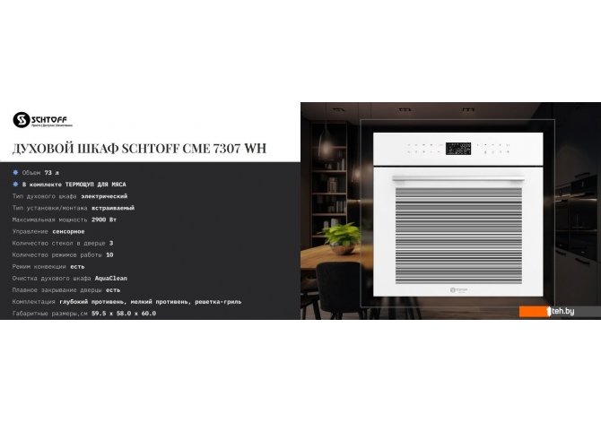 Фотографии, описание и технические характеристики модели духового шкафа Schtoff CME 7307 WH взяты из открытых источников, официального сайта производителя или представительства Schtoff в Республике Беларусь.