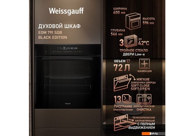 Фотографии, описание и технические характеристики модели духового шкафа Weissgauff EOM 791 SDB Black Edition взяты из открытых источников, официального сайта производителя или представительства Weissgauff в Республике Беларусь.