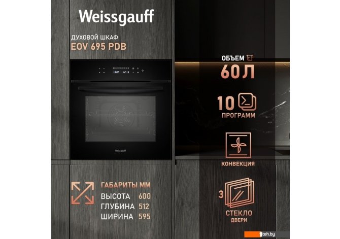 Фотографии, описание и технические характеристики модели духового шкафа Weissgauff EOV 695 PDB взяты из открытых источников, официального сайта производителя или представительства Weissgauff в Республике Беларусь.