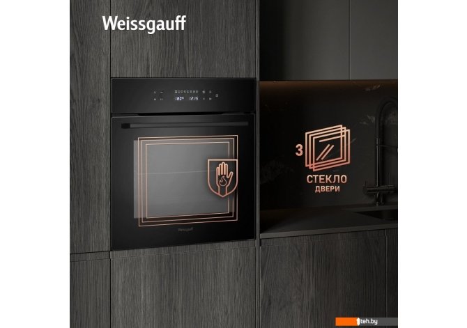 | Информация | Новое поколение электрических духовых шкафов от Weissgauff предлагает модель, выполненную в черном закаленном стекле, имеющую полностью сенсорное управление, а также современный дисплей с белой подсветкой и расширенной индикацией. Тройное остекление дверцы отражает все то легендарное внимание к деталям, которым так славится продукция Weissgauff. Данный духовой шкаф станет не только отличным приобретением для вашей кухни, но и настоящим украшением интерьера, отражающим все совершенство вашего вкуса и стиля! Удобный сенсорный дисплей с крупной индикацией - это настоящая гордость Weissgauff, ведь он не только является интуитивно понятным, но и великолепно реагирует на прикосновения с первого нажатия даже в том случае, если руки влажные или прохладные. Технология SMART MENU с визуальным отображением на дисплее выбранной программы приготовления и предустановленной температурой, которую духовой шкаф сам подберет вам оптимальным образом для каждого режима! При этом, вы можете менять уровень нагрева прямо в процессе работы устройства, управляя ходом приготовления блюда словно настоящий шеф-повар! Объем 60 литров дает вам полную уверенность в том, что приобретая этот духовой шкаф, вы сможете разместить в нем сразу весь необходимый объем пищи, и даже профессионально работать на нескольких уровнях одновременно, порадовав себя и своих близких настоящим пиром, приготовленным в духовом шкафу Weissgauff на действительно ресторанном уровне. 10 функций духового шкафа предлагающих самые необходимые и наиболее востребованные режимы: Верхний и нижний нагрев, Нижний нагрев, Гриль, Верхний и нижний нагрев + конвекция, Нижний нагрев + конвекция, Гриль + конвекция, Размораживание, Режим ферментации, "Аэрогриль" Режим интенсивного запекания, Режим освещения. Режим ферментации позволяет духовке работать на низких температурах, что идеально подходит для подъема теста, приготовления заквасок и йогуртов. Это инновационное решение открывает новые возможности для кулинарных экспериментов и создания вкусных и полезных блюд Аэрогриль - это режим интенсивного запекания блюд , используется для запекания, тушения, томления, сушки овощей и фруктов, а также применяется для жарки, стерилизации, приготовления в горшочках и сушки грибов. Данный вид кулинарной обработки обеспечивает отличный результат с минимальными затратами времени . Тройное стекло дверцы, воплощающее в себе весь подход к безопасности и термозащите, который Weissgauff реализовали в данной модели. Теперь случайные прикосновения к дверце духового шкафа во время процесса приготовления еды больше будут не страшны, ведь мы позаботились о том, чтобы фронтальная сторона духового шкафа никогда не нагревалась до опасных температур. Съемные стекла дверцы, делают процесс очистки духовки гораздо более удобным и простым: всего лишь разберите дверцу за считанные минуты, чтобы совершить чистку всех труднодоступных мест, вернув облику вашего духового шкафа первозданную чистоту. Эмаль SMART CLEAN - это особое покрытие духового шкафа, призванное сделать процесс ухода за ним еще более простым и удобным. Благодаря эмали, изготовленной и нанесенной с применением сразу ряда инновационных технологий, ваш духовой шкаф будет оснащен самым настоящим высокоэффективным щитом, препятствующим накоплению жира, запаха и за