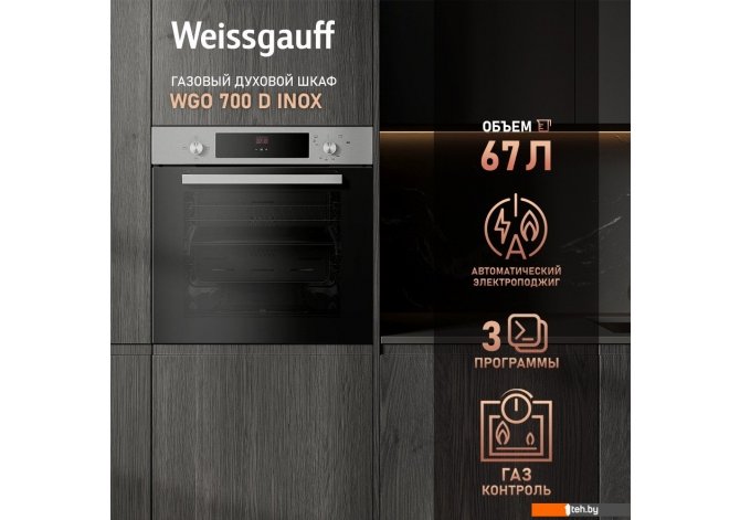 Фотографии, описание и технические характеристики модели духового шкафа Weissgauff WGO 700 D Inox взяты из открытых источников, официального сайта производителя или представительства Weissgauff в Республике Беларусь.
