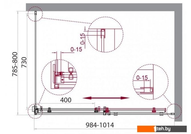 | Информация | Душевой уголок прямоугольный Ориентация: универсальная Материал полотна двери: закаленное стекло Несущий профиль из нержавеющей стали Регулировка ширины предусмотрена за счет боковых профилей Крепления полотна двери: двойные ролики |