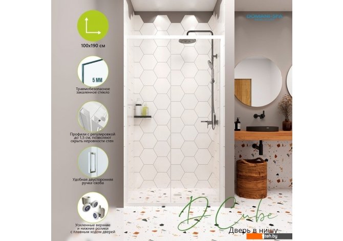 Фотографии, описание и технические характеристики модели душевой кабины Domani-Spa DoorCube 100x190 DS04DCb100L0Cl00.W взяты из открытых источников, официального сайта производителя или представительства Domani-Spa в Республике Беларусь.