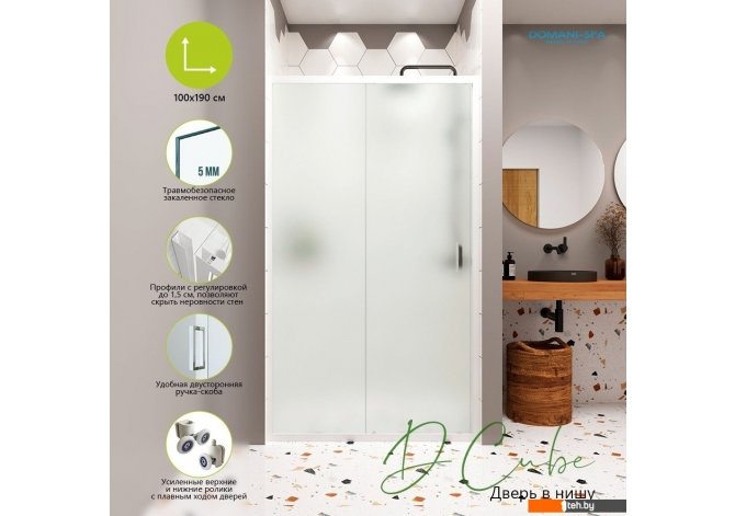 Фотографии, описание и технические характеристики модели душевой кабины Domani-Spa DoorCube 100x190 DS04DCb100L0M00.W взяты из открытых источников, официального сайта производителя или представительства Domani-Spa в Республике Беларусь.