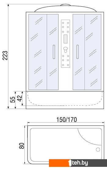 Фотографии, описание и технические характеристики модели душевой кабины River Wisla 170/80/55 ТН взяты из открытых источников, официального сайта производителя или представительства River в Республике Беларусь.