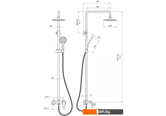 | Вылет верхнего душа | 395 мм |
