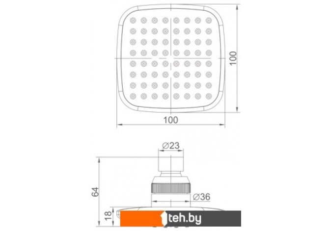 | Диаметр (ширина) верхнего душа | 100 мм |