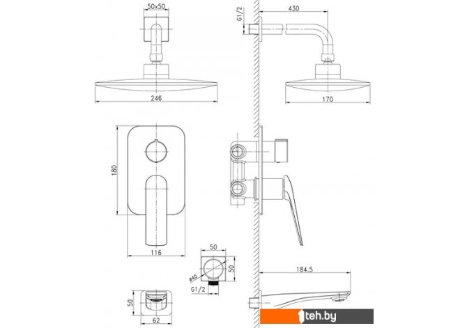 | Форма верхнего душа | прямоугольная |