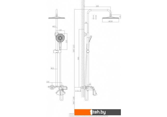 | Диаметр (ширина) верхнего душа | 250 мм |