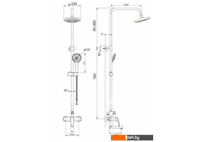 | Комплектация | верхний душ, штанга, держатель лейки, шланг, смеситель |