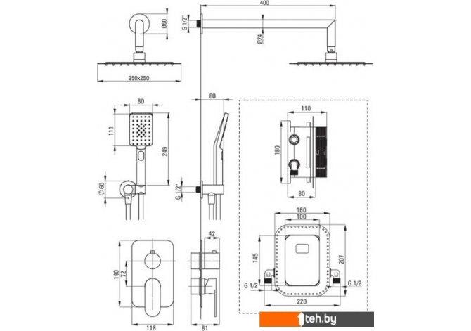 | Тип | душевая система (с верхним душем) |