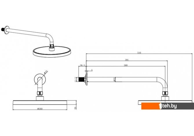 | Диаметр (ширина) верхнего душа | 260 мм |