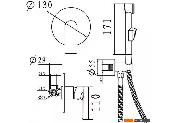 | Комплектация | держатель лейки, шланг, смеситель, гигиенический душ (лейка) |