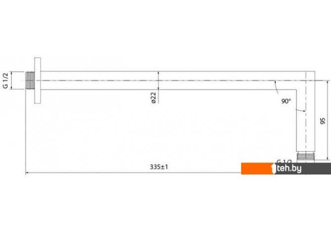 | Информация | Кронштейн для верхнего душа, материал латунь, цвет хром, никель-хромовое покрытие, длина 330 мм, внутренний диаметр 22мм, толщина изделия 0,8 мм. |