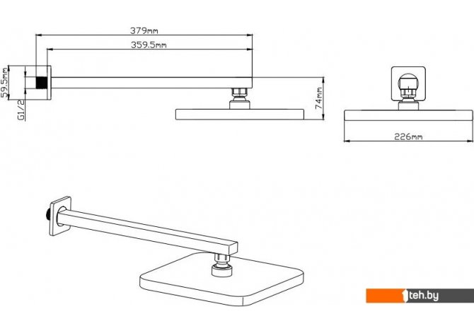| Диаметр (ширина) верхнего душа | 226 мм |