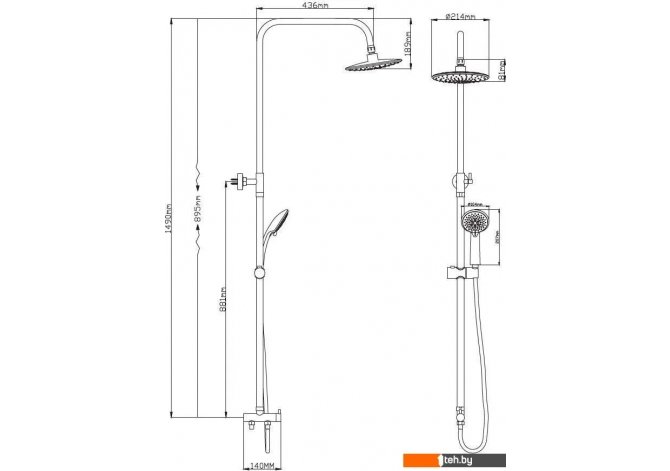 | Диаметр (ширина) верхнего душа | 214 мм |