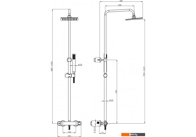 | Комплектация | верхний душ, штанга, ручной душ (лейка), держатель лейки, шланг, смеситель |