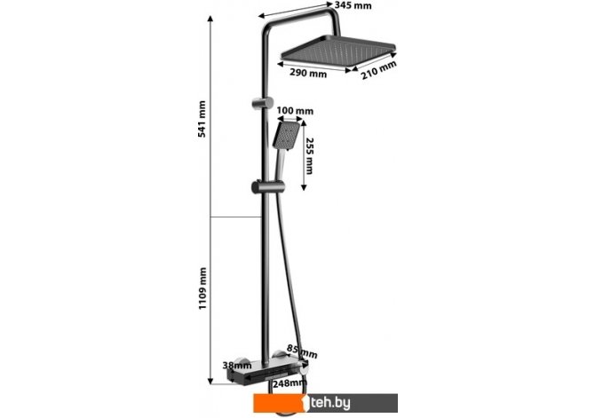 | Диаметр (ширина) верхнего душа | 290 мм |