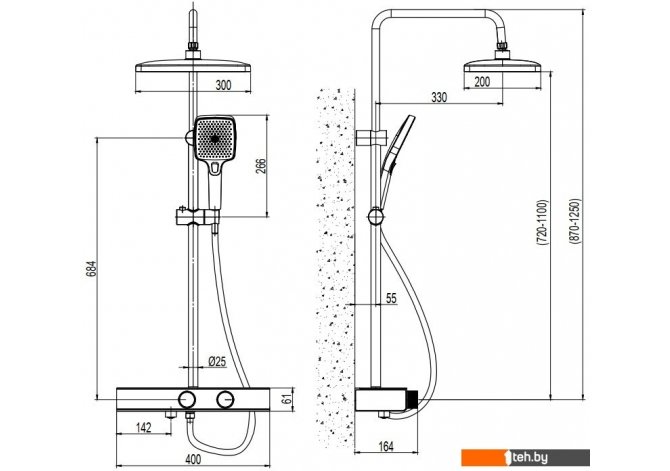 | Диаметр (ширина) верхнего душа | 300 мм |
