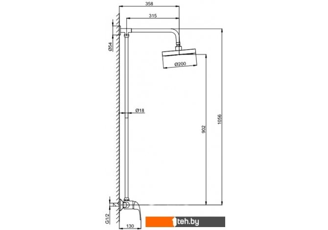 | Вылет верхнего душа | 358 мм |