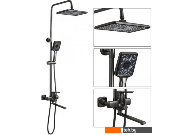 | Комплектация | верхний душ, штанга, ручной душ (лейка), держатель лейки, шланг, смеситель, излив для ванны |