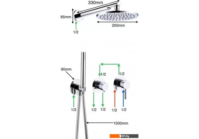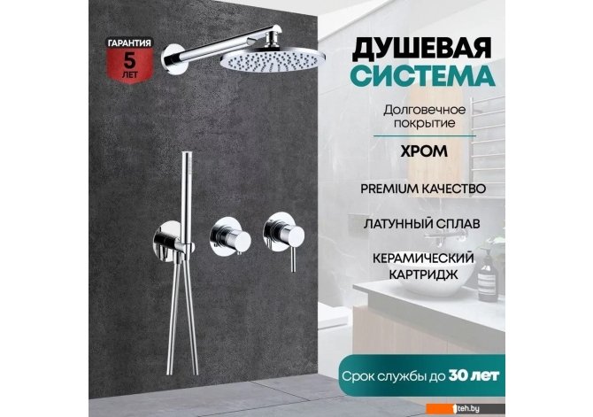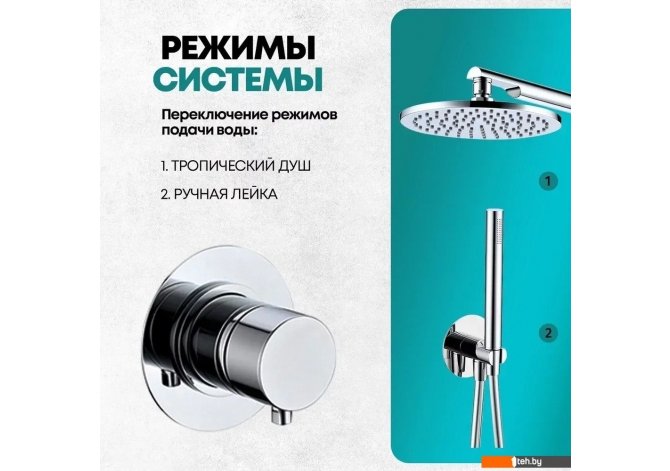 | Комплектация | верхний душ, ручной душ (лейка), шланг |