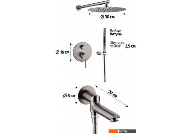 | Диаметр (ширина) верхнего душа | 300 мм |
