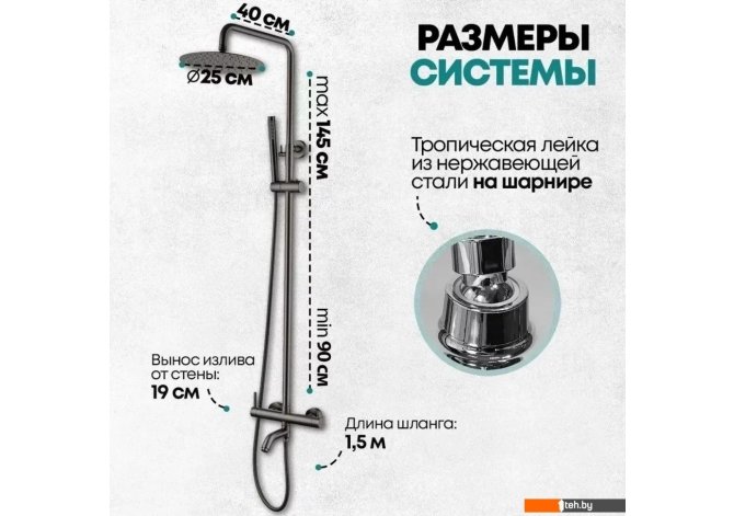 | Диаметр (ширина) верхнего душа | 250 мм |