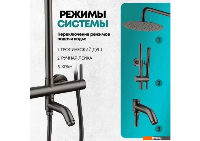 | Комплектация | верхний душ, штанга, ручной душ (лейка), шланг |
