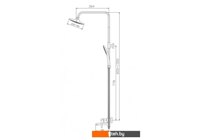 | Диаметр (ширина) верхнего душа | 255 мм |