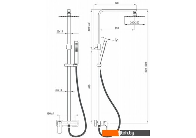 | Форма верхнего душа | прямоугольная |