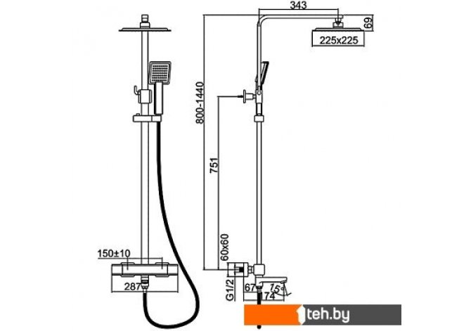 | Диаметр (ширина) верхнего душа | 225 мм |